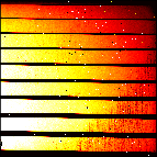 This is the raw file monitor with screenshots of raw calibration data. There is one page per raw data type. All files taken in the same template are displayed in the same row. The number of displayed files per template is limited depending on raw type and instrument. Files which are not displayed have a placeholder ("n/c", i.e. "not configured"). Files that could not be downloaded from the archive are marked as "not yet available". Use the 'jump' button to jump to a specific set of raw displays, labelled by their AB name. Click on the thumbnails to get a larger display together with histograms and cuts. Find more information in the help. Special information for CRIRES raw files: