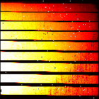 This is the raw file monitor with screenshots of raw calibration data. There is one page per raw data type. All files taken in the same template are displayed in the same row. The number of displayed files per template is limited depending on raw type and instrument. Files which are not displayed have a placeholder ("n/c", i.e. "not configured"). Files that could not be downloaded from the archive are marked as "not yet available". Use the 'jump' button to jump to a specific set of raw displays, labelled by their AB name. Click on the thumbnails to get a larger display together with histograms and cuts. Find more information in the help. Special information for CRIRES raw files: