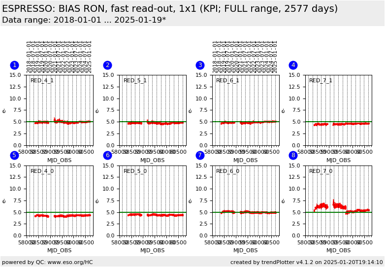 KPI plot for read-out noise (RON) as determined from bias calibrations.