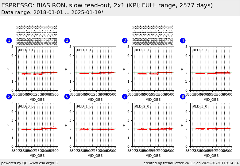 KPI plot for read-out noise (RON) as determined from bias calibrations.