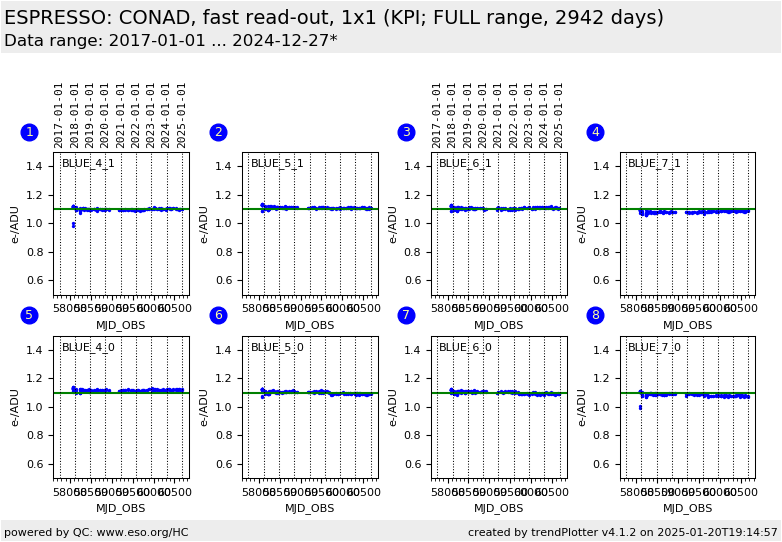 KPI plot for CONAD [e-/ADU] as determined from LED flat-field calibrations.