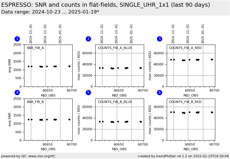 The upper limit for the counts has been set slightly below the saturation limit of 65535 ADU,