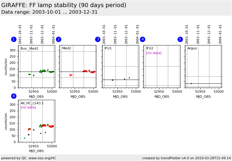 This is the Health Check plot for the stability of the GIRAFFE flat field calibration