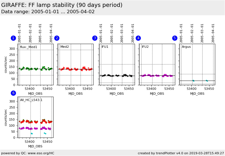 This is the Health Check plot for the stability of the GIRAFFE flat field calibration