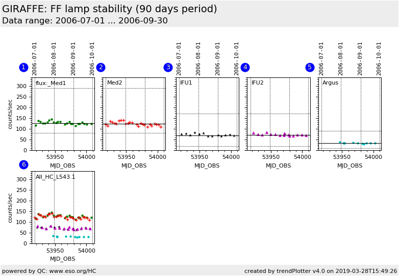 This is the Health Check plot for the stability of the GIRAFFE flat field calibration