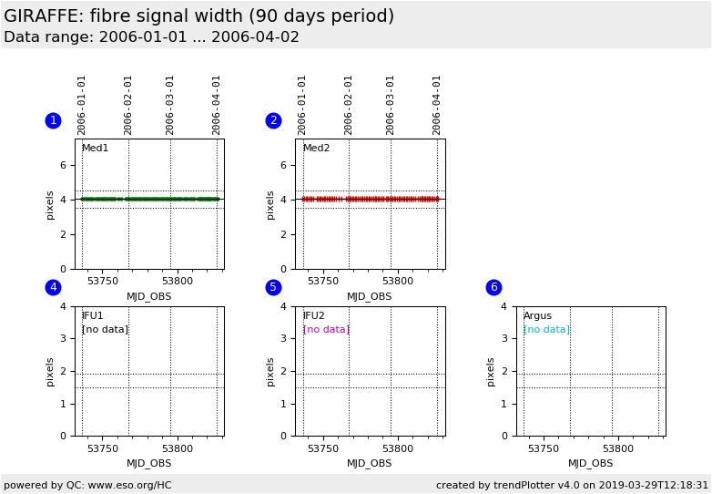 This is the Health Check plot for the width of the fibre signal in the GIRAFFE