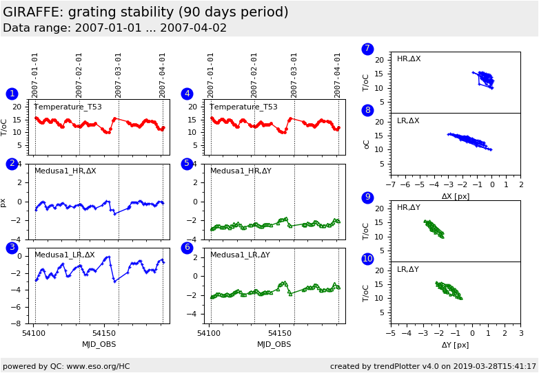 This is the trending plot monitoring the stability of the GIRAFFE high-resolution and low-resolution grating.