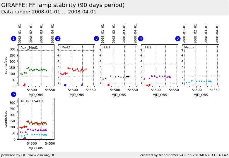 This is the Health Check plot for the stability of the GIRAFFE flat field calibration