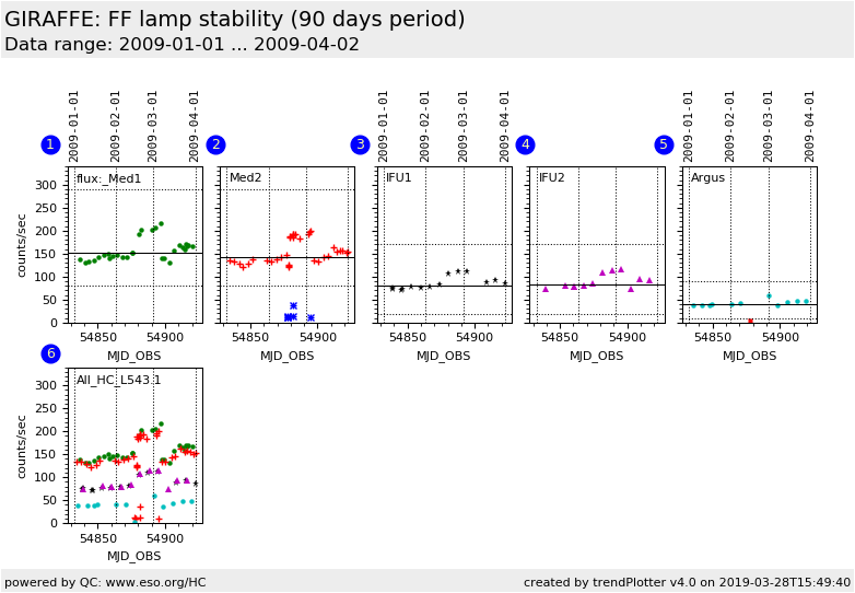 This is the Health Check plot for the stability of the GIRAFFE flat field calibration