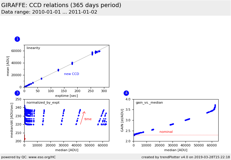 PLot 4 (for the new CCD only) shows the GAIN values plotted over exposure