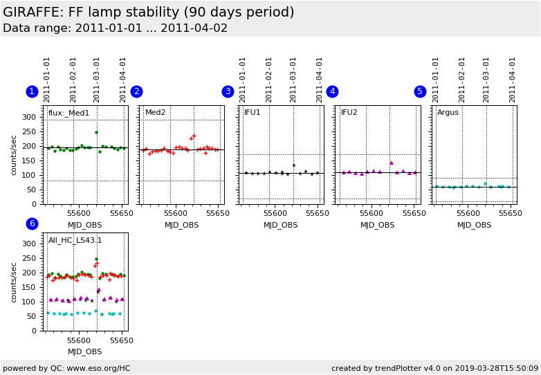 lamps. The plot is based on ROBOTIC flats (flattype=ROB) taken several times a week.