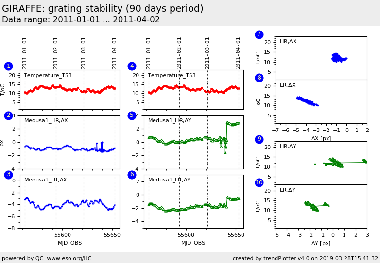 This is the trending plot monitoring the stability of the GIRAFFE high-resolution and low-resolution grating.