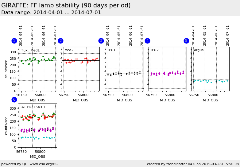 This is the Health Check plot for the stability of the GIRAFFE flat field calibration