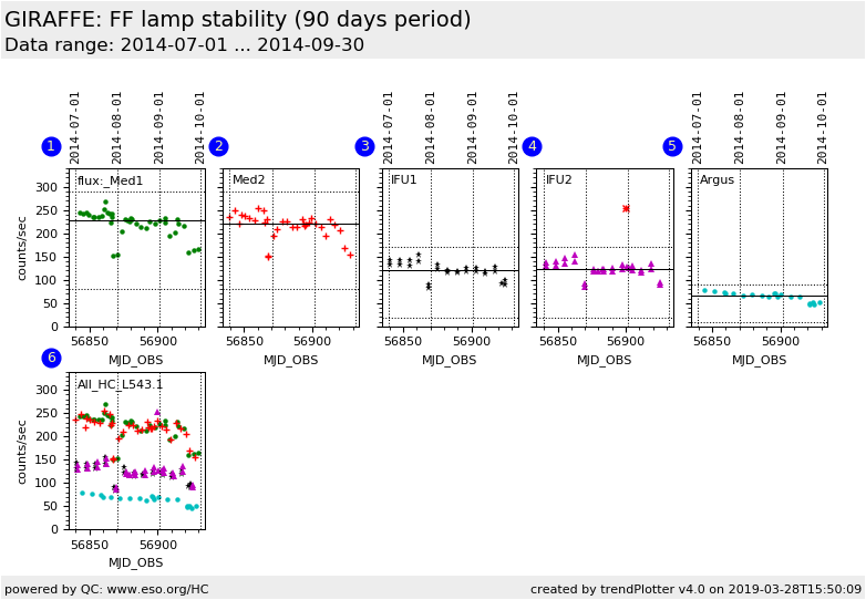 This is the Health Check plot for the stability of the GIRAFFE flat field calibration