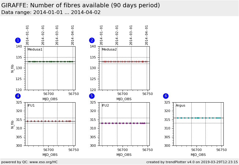 The plots are arranged per fibre system. Here we show the regular Health Check