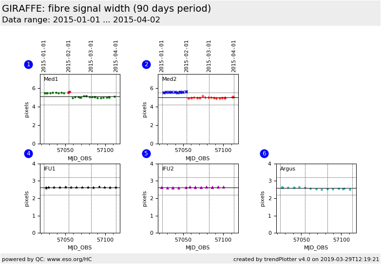 This is the Health Check plot for the width of the fibre signal in the GIRAFFE