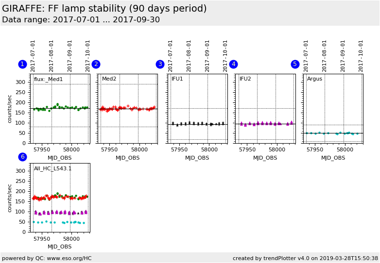 This is the Health Check plot for the stability of the GIRAFFE flat field calibration