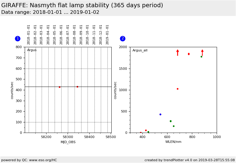 This is the trending plot for the stability of the GIRAFFE nasmyth flat calibration