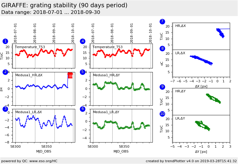 This is the trending plot monitoring the stability of the GIRAFFE high-resolution and low-resolution grating.