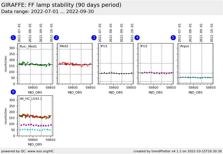 This is the Health Check plot for the stability of the GIRAFFE flat field calibration