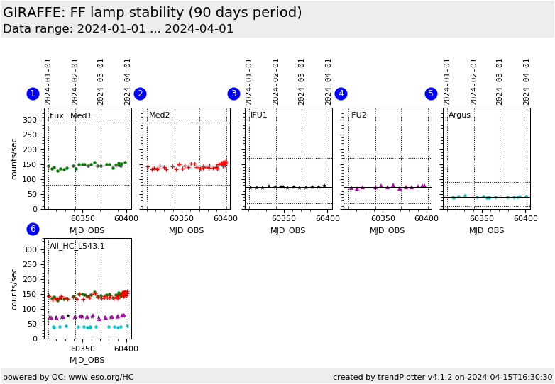 This is the Health Check plot for the stability of the GIRAFFE flat field calibration