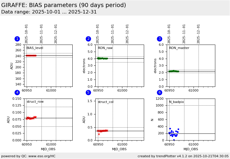 This is the trending plot for the GIRAFFE QC parameters derived from BIAS frames.