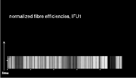 Each transmission vector is normalized to give the same average transmission (excluding broken fibres), so that subtle normalization differences hopefully cancel out and the rms values indeed reflect fibre instabilities only. The two plots on top display the following: