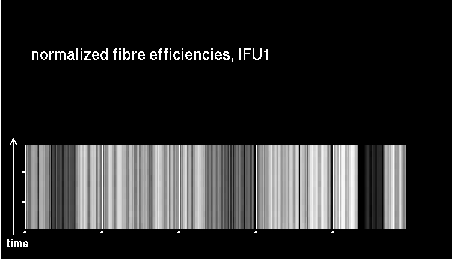 Each transmission vector is normalized to give the same average transmission (excluding broken fibres), so that subtle normalization differences hopefully cancel out and the rms values indeed reflect fibre instabilities only. The two plots on top display the following: