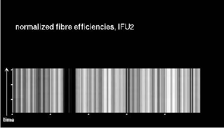 Each transmission vector is normalized to give the same average transmission (excluding broken fibres), so that subtle normalization differences hopefully cancel out and the rms values indeed reflect fibre instabilities only. The two plots on top display the following: