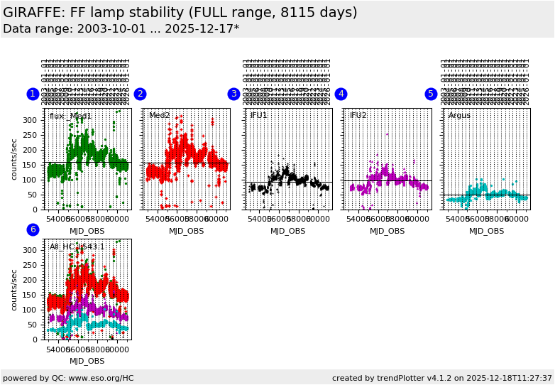 This is the FULL plot for the stability of the GIRAFFE flat field calibration