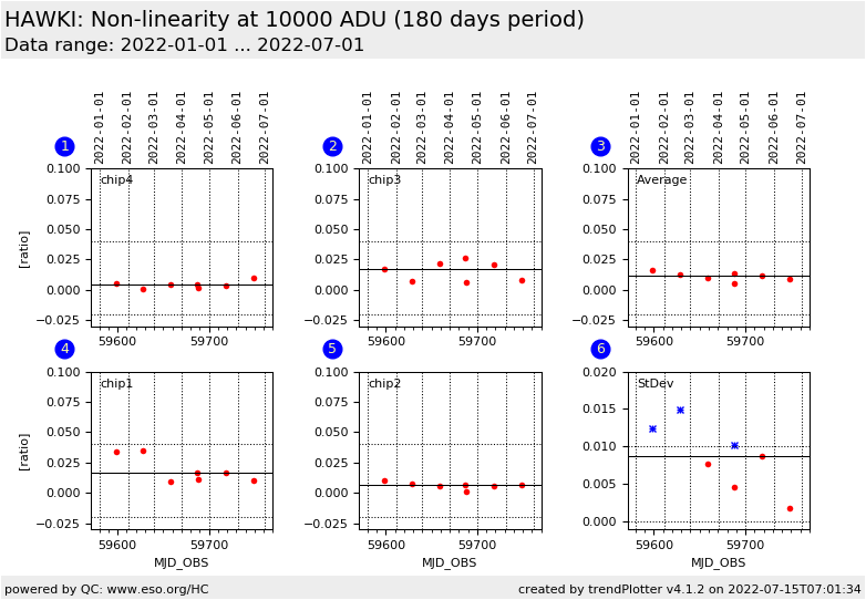 Standard deviations of the measured non-linearity at 10000 ADU of the four chips |