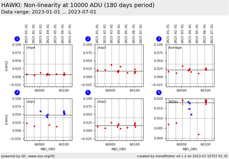 detector non-linearity at 10000 ADU, chip 1 |