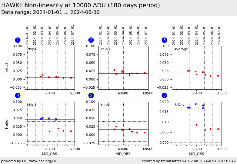 Standard deviations of the measured non-linearity at 10000 ADU of the four chips |