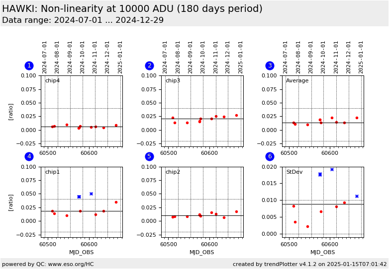 Standard deviations of the measured non-linearity at 10000 ADU of the four chips |