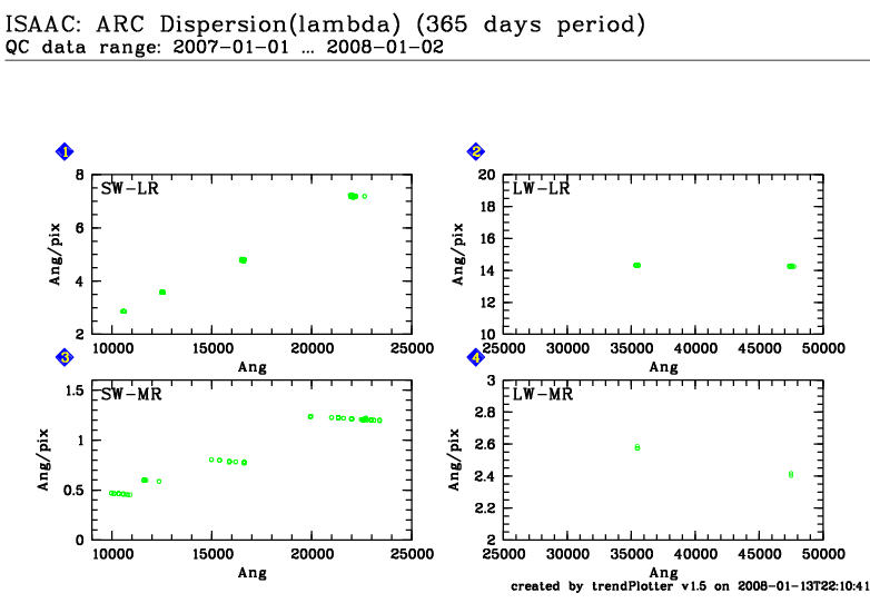 1. Dispersion (qc_dispc02) as a function of the wavelength for setup SW LR (four fixed-wavelength setups).