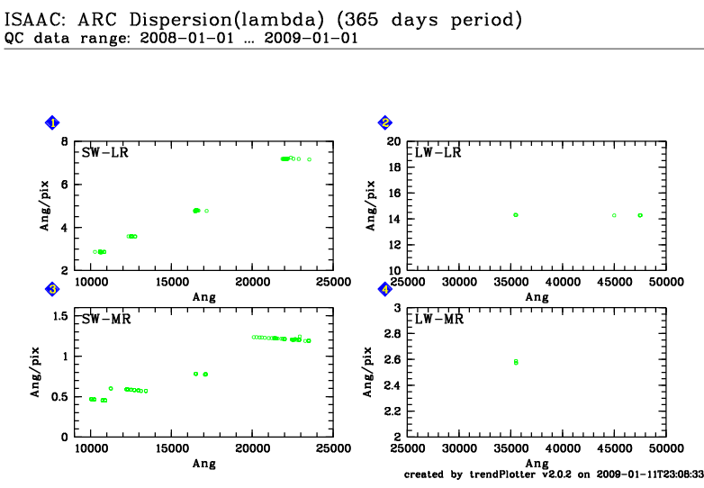 1. Dispersion (qc_dispc02) as a function of the wavelength for setup SW LR (four fixed-wavelength setups).