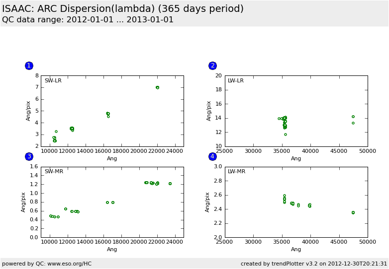 1. Dispersion (qc_dispc02) as a function of the wavelength for setup SW LR (four fixed-wavelength setups).