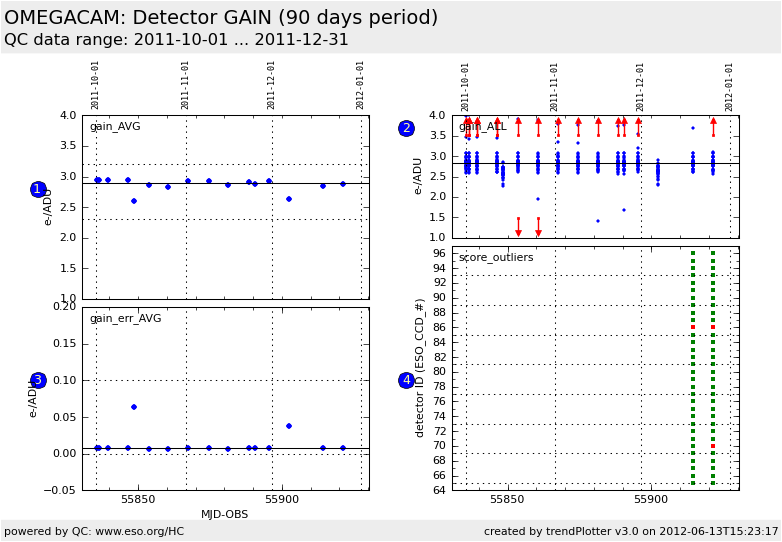 individual detector (in e-/ADU). This plot is sensitive to changes in individual