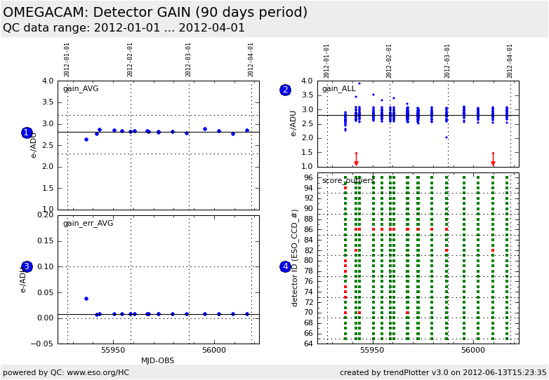 individual detector (in e-/ADU). This plot is sensitive to changes in individual