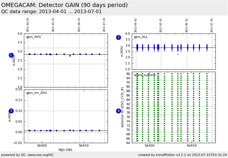 individual detector (in e-/ADU). This plot is sensitive to changes in individual