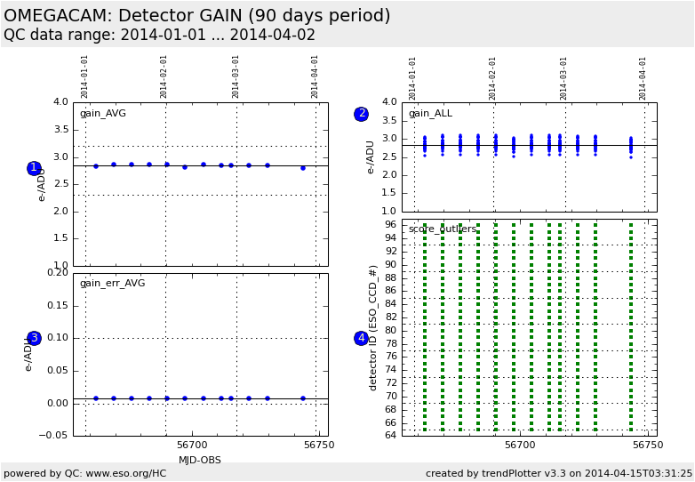 individual detector (in e-/ADU). This plot is sensitive to changes in individual