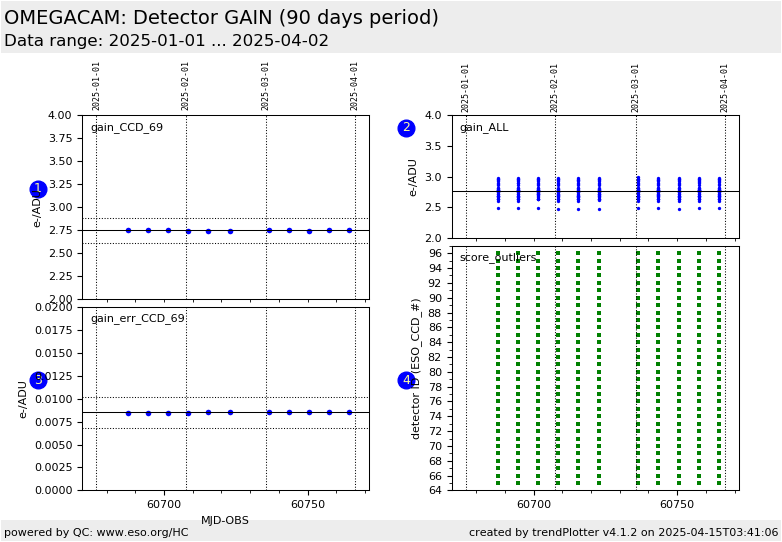 all 32 detectors used to be monitored (in e-/ADU). Since 2024-05-28, the gain of