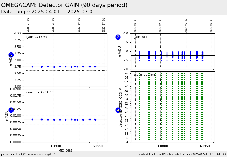 all 32 detectors used to be monitored (in e-/ADU). Since 2024-05-28, the gain of
