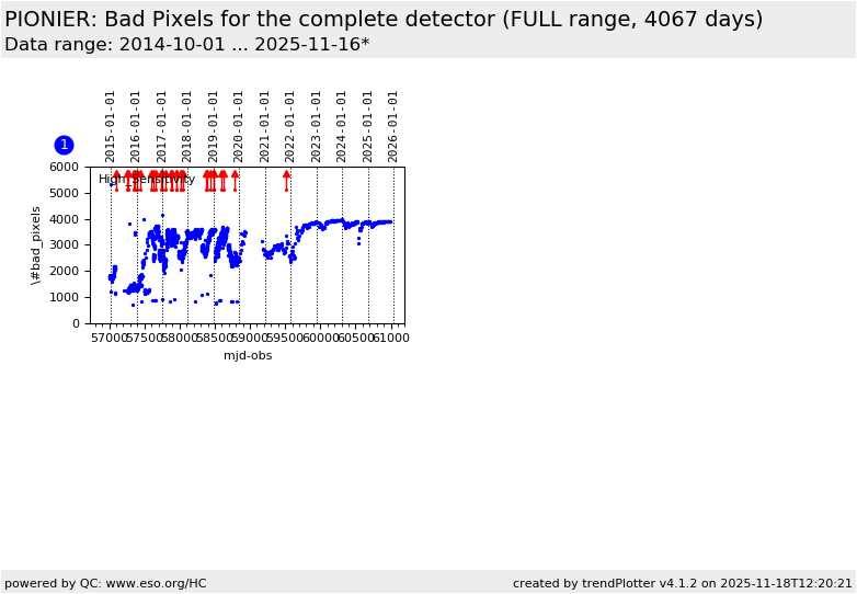 The number of bad pixels is shown for the full detector (320x255) and for the "science" pixels (26 windows of 6x1 pixels).