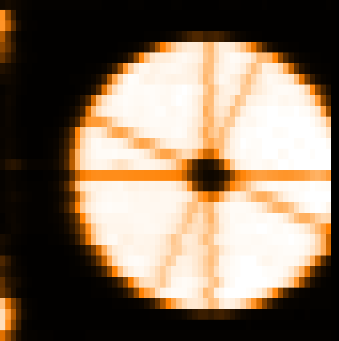 A SINFONI pupil image (median of reconstructed cube). The UT4 primary mirror and the support spider of the secondary mirror are readily visible.