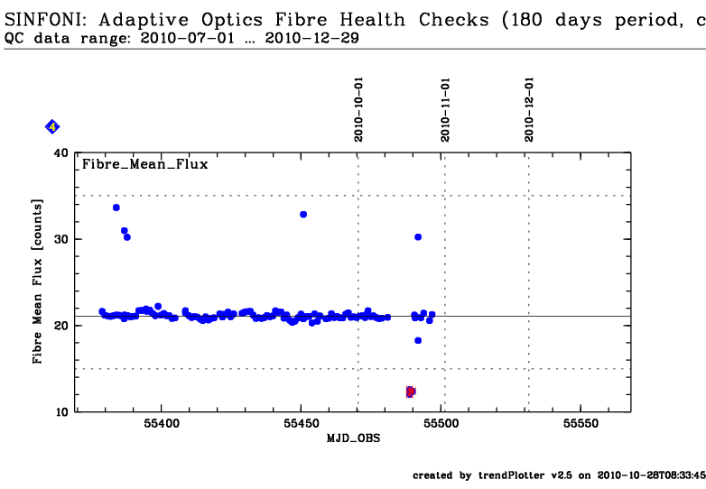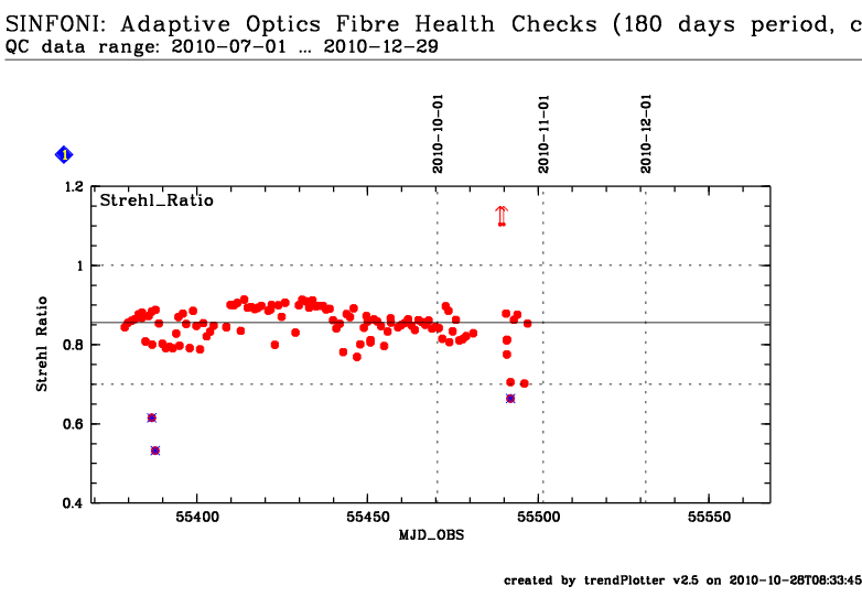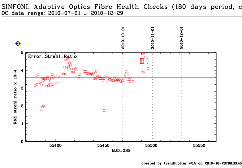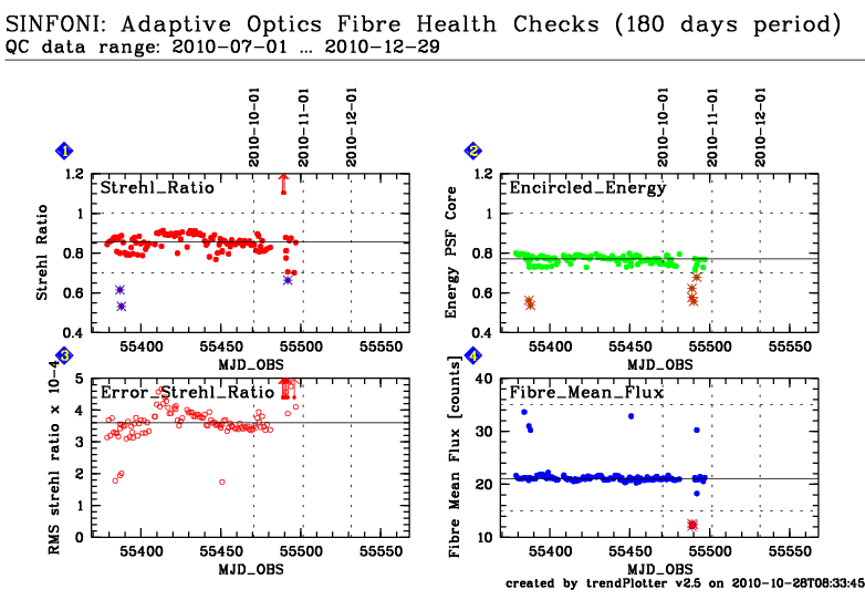 "aliens" (= data points outside the plot Y limits) are marked by a red arrow (↑ or ↓)