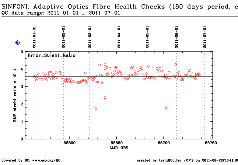 The latest date is indicated on top of the plot, data points belonging to that date are specially marked.