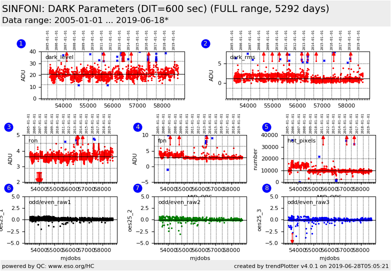 These are the trending plots for the SINFONI QC parameters derived from DARK frames.
