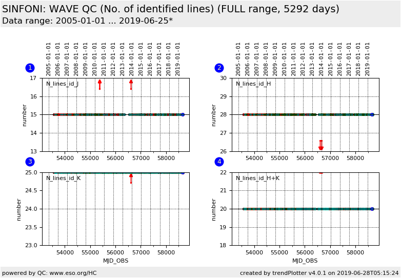 | number of identified spectral lines: H+K-band/25 mas camera scale |