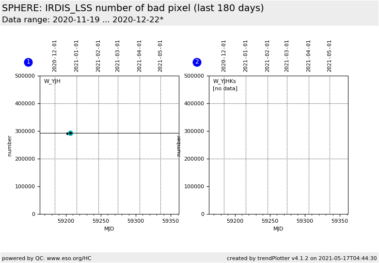 This plots shows the number of bad pixel as derived from the IRDIS flat recipe for two